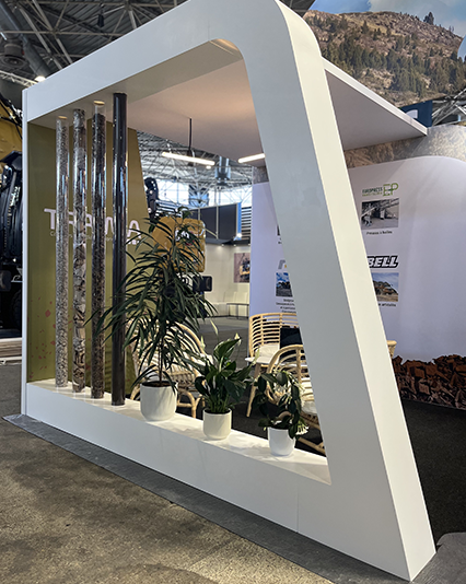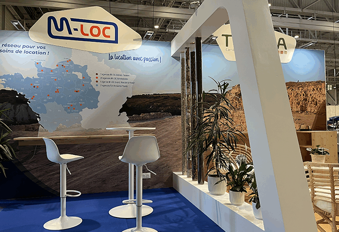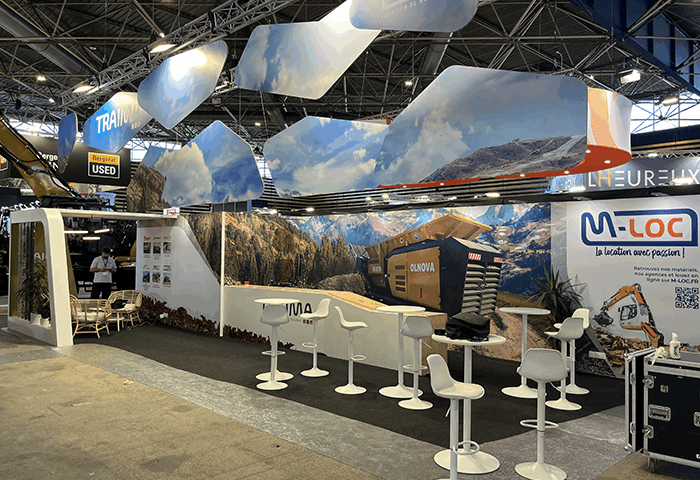 Création des contenus graphiques des stands, enseignes suspendues et signalétique, fonds décors, éclairage, mobilier et décor sur mesure.