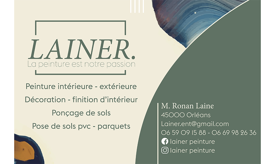 Création de logo et univers graphique pour notre client LAINER Peinture, artisan peintre dans le Loiret